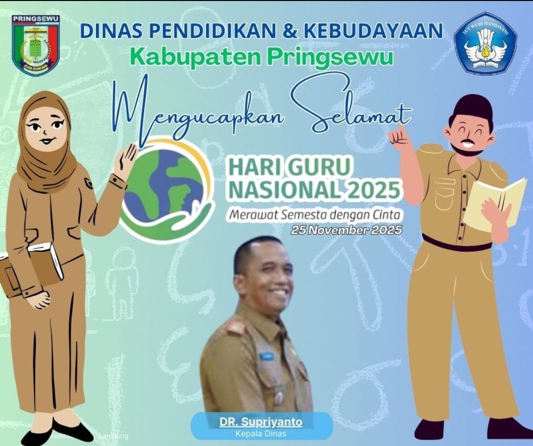 Suaraexpose.com – Pringsewu, 25 Nov 2025 Kepala Dinas Pendidikan Dan Kebudayaan menyampaikan ucapan selamat Hari Guru Nasional yang diperingati setiap tanggal 25 November.