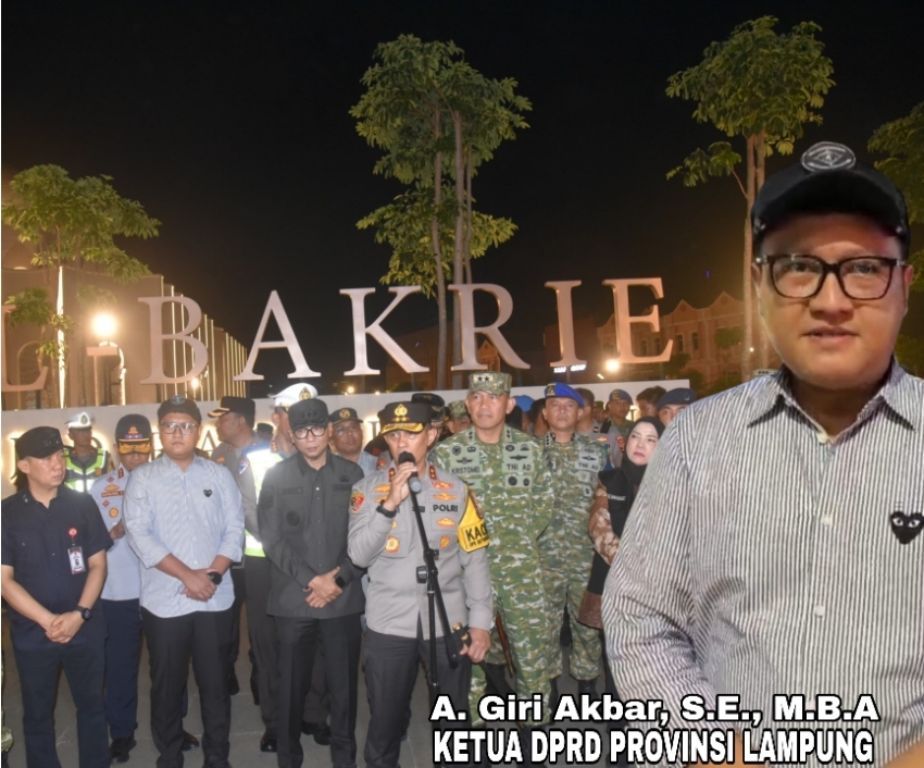 Bandar Lampung — Ketua DPRD Provinsi Lampung, A. Giri Akbar, S.E., M.B.A., mengikuti kegiatan pemantauan situasi keamanan dan ketertiban masyarakat (kamtibmas) pada malam takbiran Idul Fitri 1447 Hijriah yang dilaksanakan oleh Polda Lampung dalam rangka Operasi Ketupat Krakatau 2026, Jumat (20/3/2026).