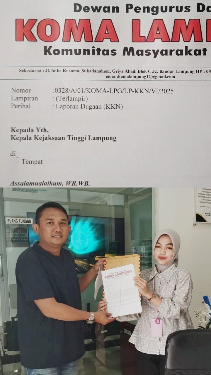 Bandar Lampung – Suaraexpose.com, Dugaan Korupsi Di Dinas PUPR Kota Bandar Lampung masuk babak baru, Senin 2 Juni 2025 KOMA LAMPUNG secara resmi melaporkan Dinas PUPR Kota Bandar Lampung Ke Kejaksaan Tinggi Lampung (KEJATI).