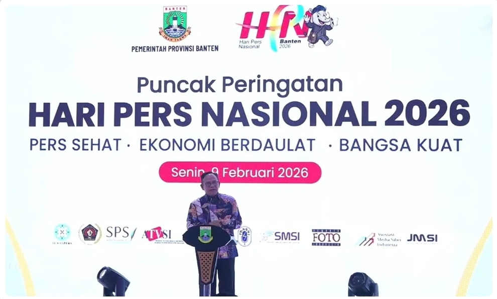 Banten — Suaraexpose.com, Presiden RI menekankan pentingnya peran pers sebagai suluh peradaban di tengah disrupsi teknologi dan dominasi algoritma. Hal tersebut disampaikan Menteri Koordinator Bidang Pemberdayaan Masyarakat, Muhaimin Iskandar, saat membacakan sambutan Presiden RI pada Puncak Peringatan Hari Pers Nasional (HPN) 2026 yang mengusung tema “Pers Sehat, Ekonomi Berdaulat, Bangsa Kuat”, di Kota Serang, Banten, Senin (9/2/2026).