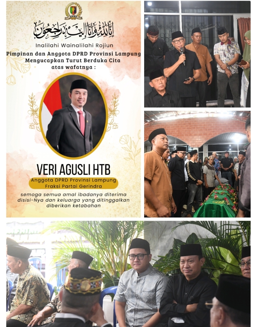 Bandar Lampung — Ketua DPRD Provinsi Lampung A. Giri Akbar, S.E., M.B.A., beserta jajaran pimpinan dan anggota DPRD Provinsi Lampung turut hadir dalam acara pelepasan jenazah almarhum Veri Agusli HTB, S.E., Anggota DPRD Provinsi Lampung dari Fraksi Partai Gerindra, yang dilaksanakan pada Rabu (11/3/2026).