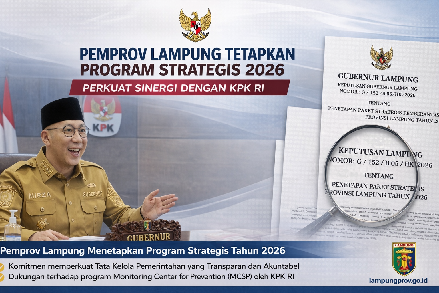Bandar Lampung – Suaraexpose.com, Pemerintah Provinsi Lampung resmi menetapkan program strategis tahun 2026 sebagai bagian dari upaya mendukung implementasi Monitoring Center for Prevention (MCSP) oleh Komisi Pemberantasan Korupsi (KPK) RI.