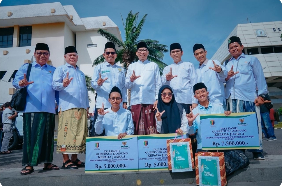 Dalam amanatnya, Gubernur Lampung, Rahmat Mirzani Djausal membacakan sambutan tertulis Menteri Agama RI Dr. Nasaruddin Umar, MA yang menekankan peringatan Hari Santri merupakan sebuah momentum penuh berkah penuh cinta dan