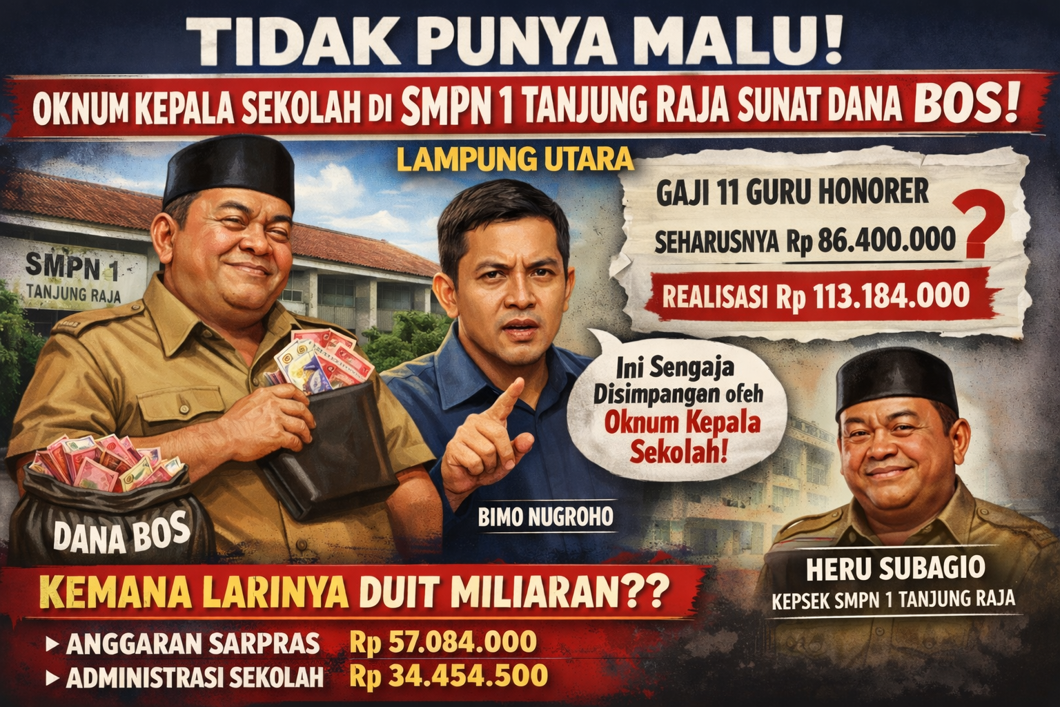 Bimo Nugroho M. Pd., pemerhati pendidikan provinsi Lampung, tidak ragu menyuarakan pandangannya yang tajam. Menurutnya, dugaan penyimpangan yang terjadi di SMPN 1 Tanjung Raja bukanlah kesalahan administratif semata atau kelalaian tak disengaja.