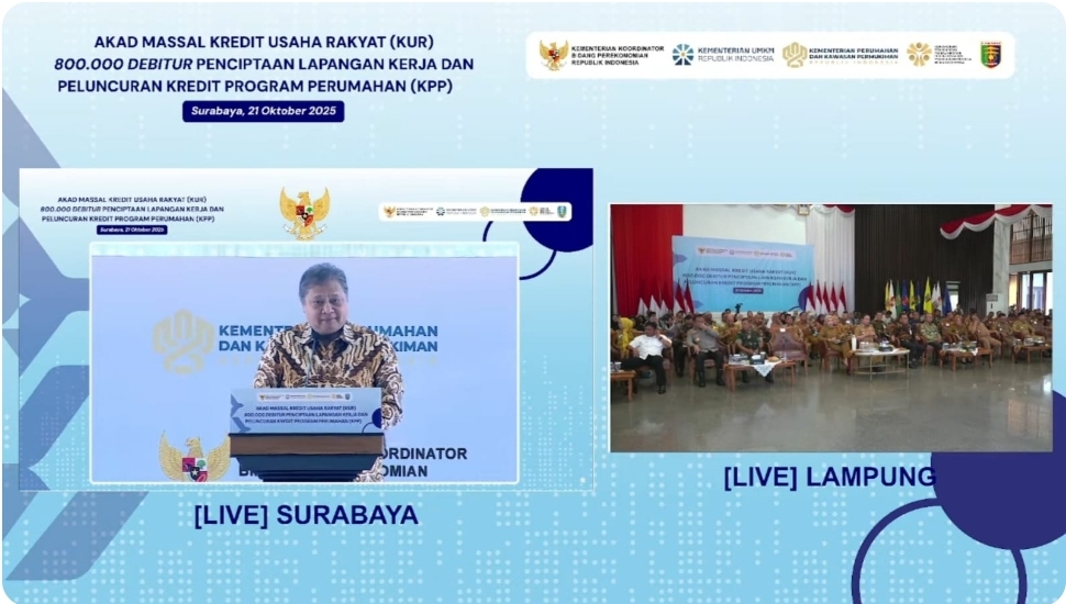 asal Lampung pada kegiatan Akad Massal KUR 800.000 Debitur untuk Penciptaan Lapangan Kerja dan Peluncuran Kredit Program Perumahan (KPP), di Mahan Agung, Bandar Lampung, Selasa (21/10/2025).